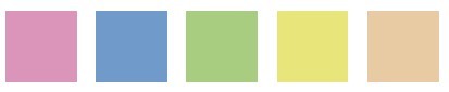 桃紅、藍、綠、黃、粉膚色